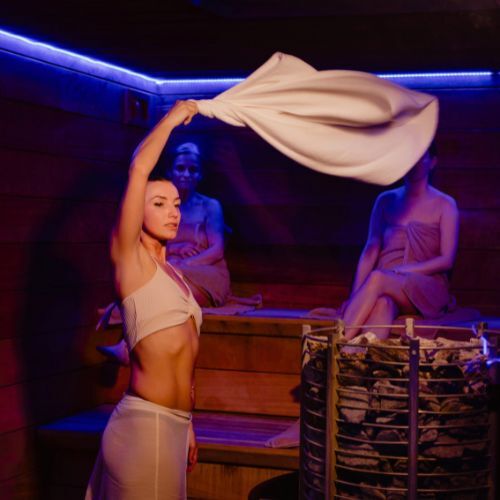 Wieczór saunowy to kilkugodzinne wydarzenie z ceremoniami saunowymi. Prowadzone jest przez Saunamistrza, który dba o komfort i bezpieczeństwo uczestników. Podczas ceremonii wykorzystywane są naturalne olejki i kadzidła. Saunamistrz poprzez specjalną technikę poruszania ręcznikiem lub wachlarzem intensywnie miesza powietrze, co potęguje wrażenia .